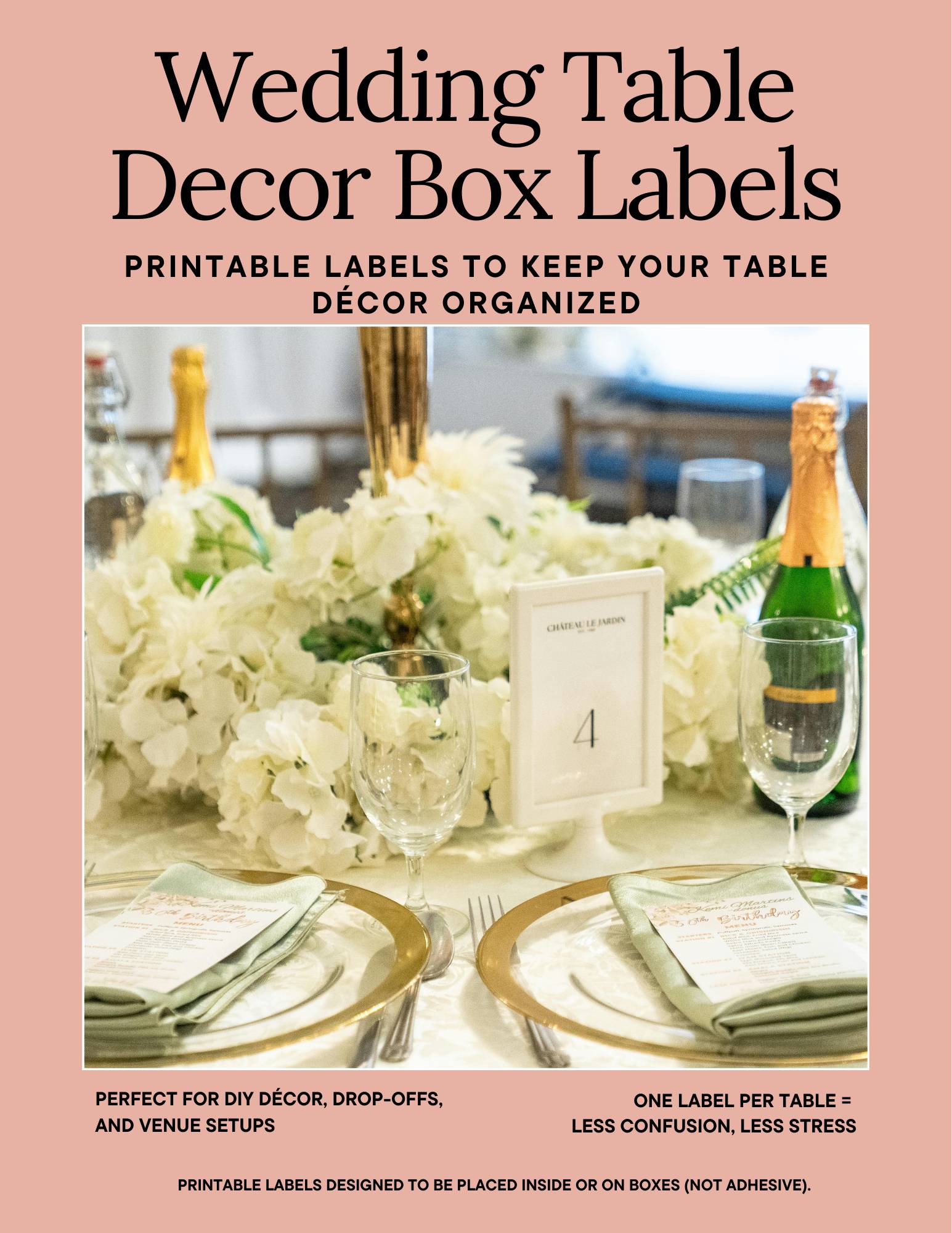 These labels remove the guesswork by clearly identifying table-specific décor, so setup stays smooth and efficient from the moment boxes are opened.